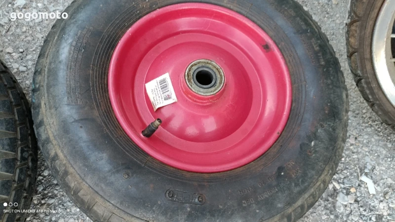 Колело за товарна количка, гума и джанта за товарни колички, всички данни са на снимките Моля вижте фото Цената е за брой резервно колело за товарна количка. Употребявани, със забележки, но напълно изправни.