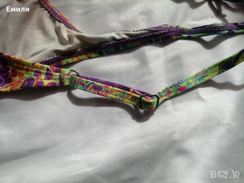 - размерът на горнището (обиколката) се регулира и дължината на банския