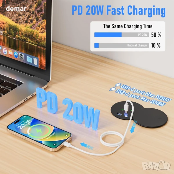 Този вграден разклонител 3 в 1 разполага с един контакт, USB-A и USB-C порт, който поддържа бързо зареждане до 20 W, което ви позволява да захранвате три устройства едновременно. Проектиран за вграждане в бюрото ви, той скрива кабелите, намалява безпорядъка и поддържа чисто и организирано работно място. Инсталацията е лесна със стандартен 80 мм отвор или съществуващ отвор на бюрото, а 2-метровият кабел предлага удължен обхват. Изработен от издръжливи, устойчиви на износване материали за безопасна ежедневна употреба.