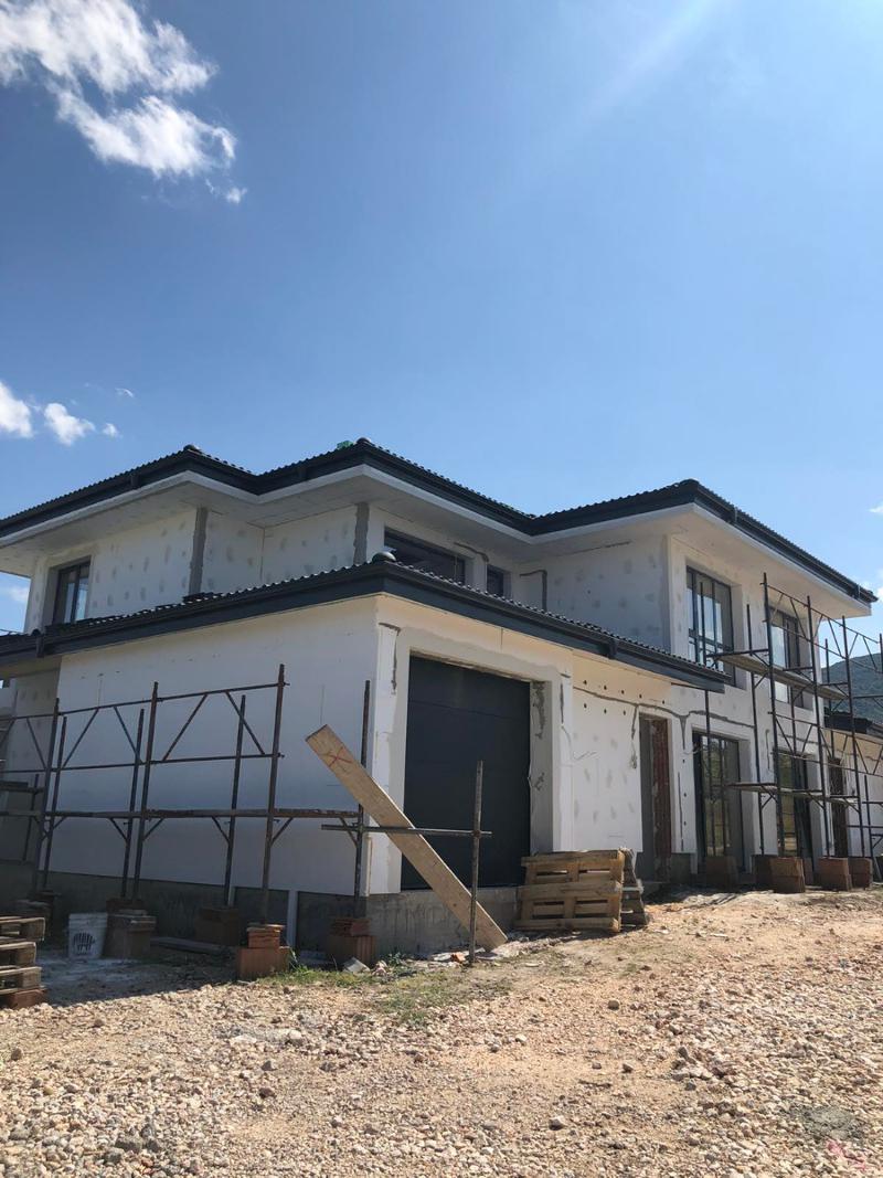 Оф. 24562 Агенция Кристал ви предлага къща в строеж, с А 14, в нов комплекс, с перфектна локация в с. Марково, състоящ се от само 8 къщи. Има Акт14 на две от тях - с връзка към канализация и изграден водопровод - всяка къща има собствен двор 150 кв.м. и източно и южно изложение - с асфалтов път до комплекса - гараж с топла връзка и отделно паркомясто - покрита веранда, на която се излиза от всекидневната - ет.1 е 100 кв.м. и се състои от просторен и светъл хол с кухненски бокс и място за камина; складово помещение, тоалетна за гости, кабинет/спалня с баня и тоалетна - ет.2 е 89 кв.м. с 3 просторни спални, 2 бани с тоалетни, дрешник и две тераси - степен на завършеност - ВиК инсталация, Ел и ОВ инсталации. Стените са на мазилка. Външна мазилка с висококачествена топлоизолация 8см. PVC дограма 5 камерна цвят тъмно сив, със стъклопакет 4 сезона. Възможно е разсрочване на плащанията или капаро, с доплащане на Акт16.