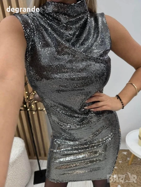 Сребриста елегантна рокля с паети → Обява 50912867