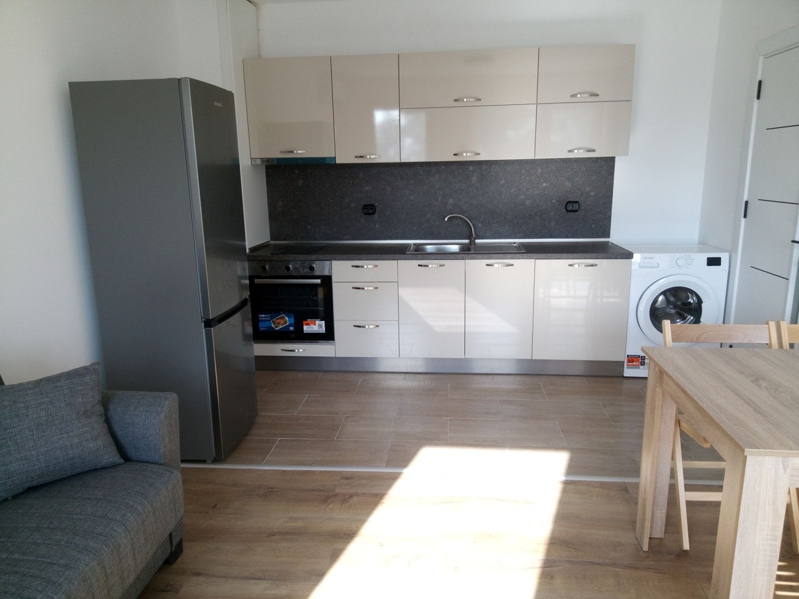 Предлага се напълно обзаведено във вида от снимките, оборудвано с всички необходими електроуреди - климатици, пералня, печка.