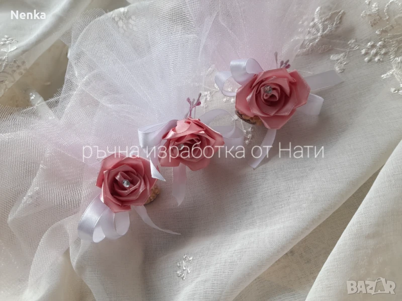 Изработвам сватбени бутониери за ревер и гривни за ръка. Късметчета за хвърляне. Кошница за късмети.