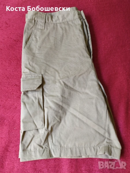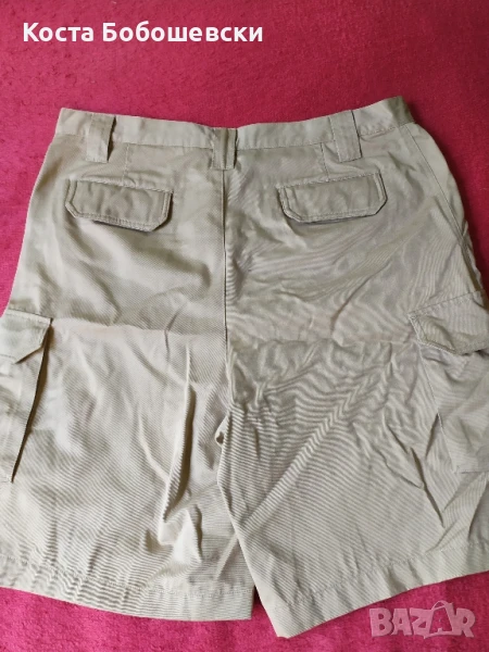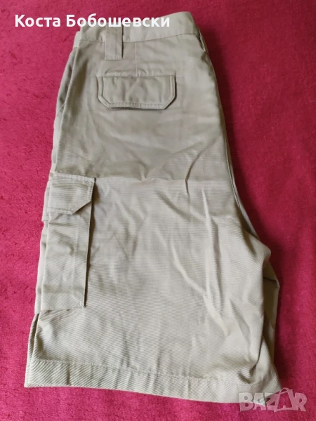 Продавам страхотни мъжки къси панталони, нови, цвят охра, с размери както следва, талия 100см, ханш 120см. С цип YKK, 4 удобно разположени джоба отпред и два отзад. Заслужават си!