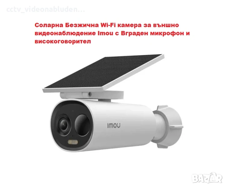 Соларна Безжична Wi-Fi камера за външно видеонаблюдение Imou с Вграден микрофон и високоговорител.