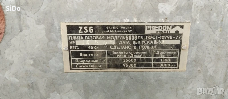 Части от газова печка "Предом"ПОЛША → Обява 50913828