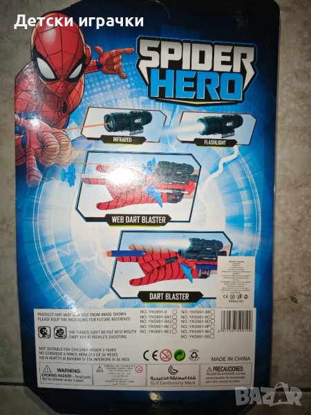 Комплект Фигурка Спайдърмен и Ръкавица от текстил с изстрелвач и меки стрели, червен.