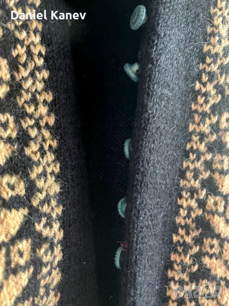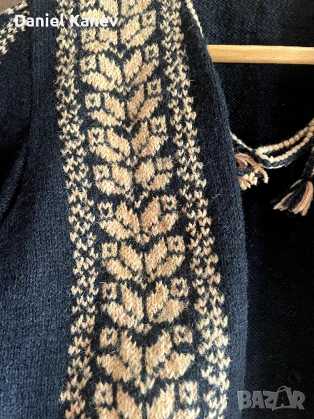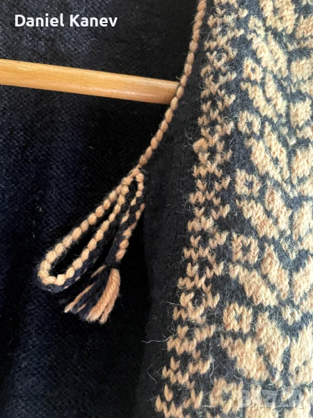 Състав: 100% вълна. От Старозагорския край. Закопчаване с копчета и петличета. В отлично състояние. С плетени етно елементи. Ръчно изработено от миналия век.