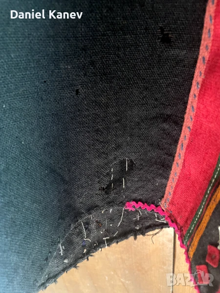 Над 100 годишен. Състав: вълна. Изцяло ръчна изработка. От Старозагорския край. Предаван от поколение на поколение.