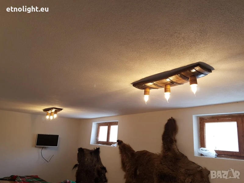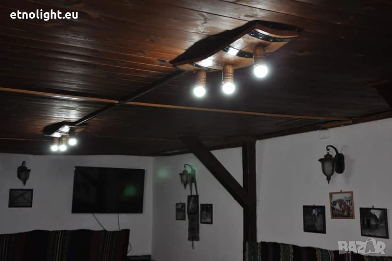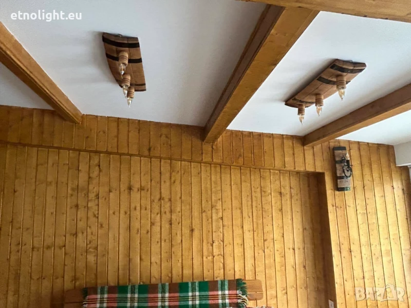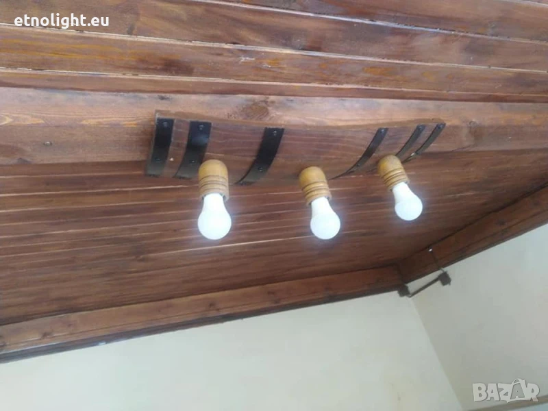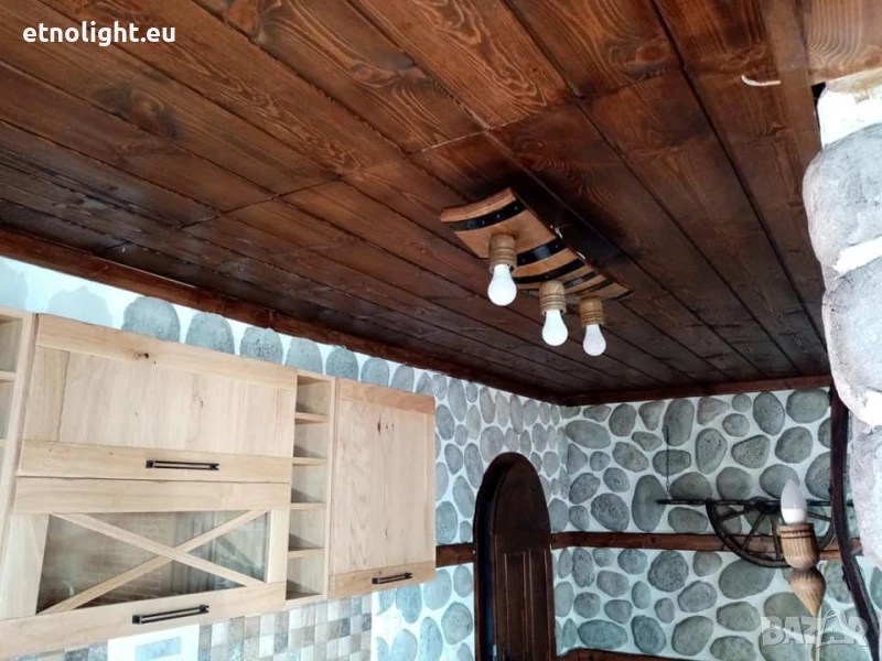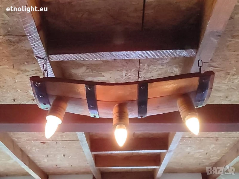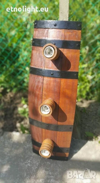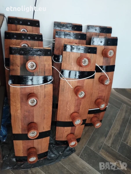 Полилеи от автентични дъбови бъчви,бурета с ръчно изработени дървени чашки!Цвят и фасунги по избор,дължина 75 -80 см, могат да бъдат със синджири или директно да се монтират на тавана , цената е за брой