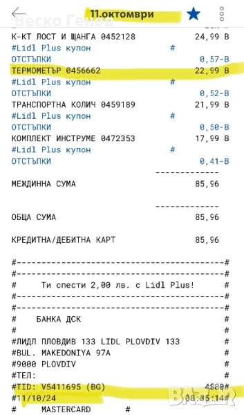 Термометър Parksaid в гаранция 3г.от Lidl до 11.10.2027