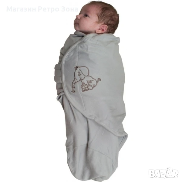 Bo Jungle: Пелена за повиване от 100% памук (за тегло до 10кг) - Elephant, снимка 1 - Пелени, памперси - 50915852 Bo Jungle: Пелена за повиване от 100% памук (за тегло до 10кг) - Elephant, снимка 2 - Пелени, памперси - 50915852 1/2