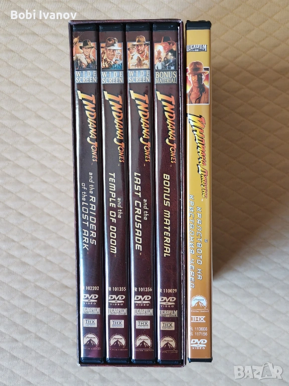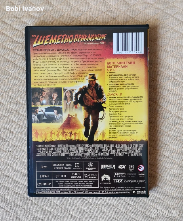 Indiana Jones Индиана Джоунс DVD Трилогия и бонус + Индиана Джоунс 4 (2 диска) с Бг субтитри. → Обява 50916233