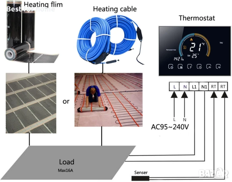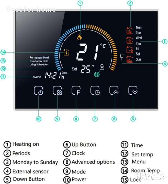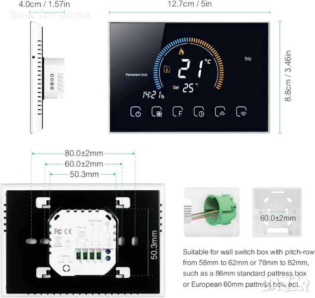 Интелигентен термостат,със сензорен екран, гласово управление за бойлер