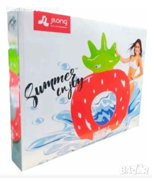 Надуваемият ринг „Ягода“ с размери 185 x 130 см е идеалният летен аксесоар за забавление и релакс във водата. Със свеж дизайн и голяма повърхност, той е подходящ както за басейн, така и за плаж. Лек, компактен и лесен за пренасяне, този надуваем аксесоар е създаден да внесе цвят и настроение във всяка водна почивка.