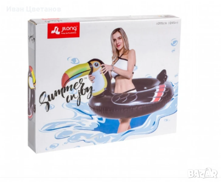 Надуваемият ринг „Токан“ е атрактивно и удобно плажно и басейново пособие, подходящо за деца и възрастни. Със своя впечатляващ дизайн и размер от 115 см, той предлага комфорт, стабилност и забавление във водата.