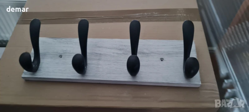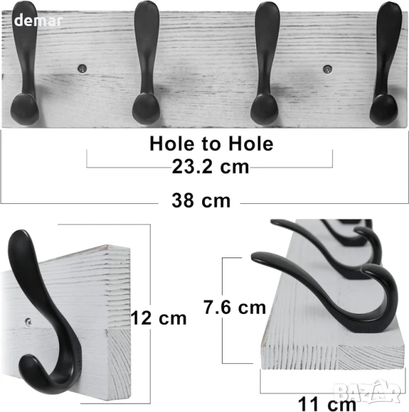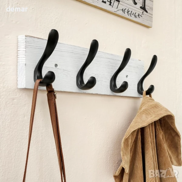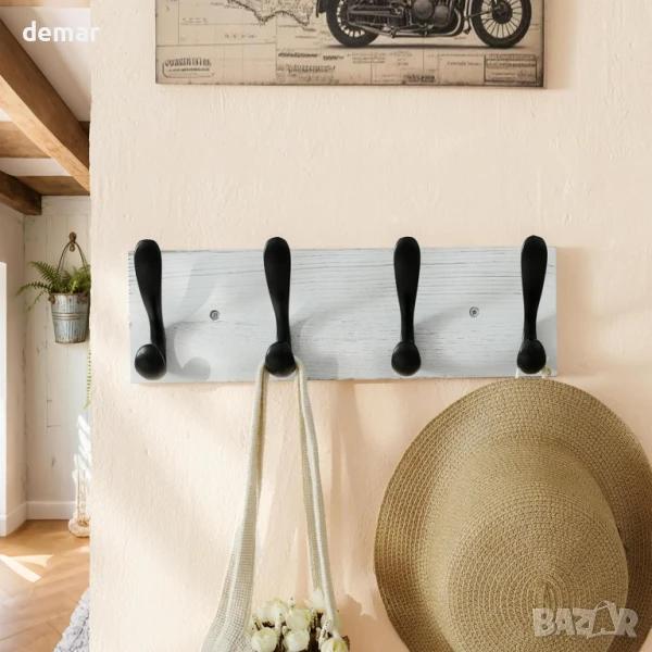 Закачалка за палта HONSKY за стенен монтаж, дървена с 4 двойни куки, бяла/черна