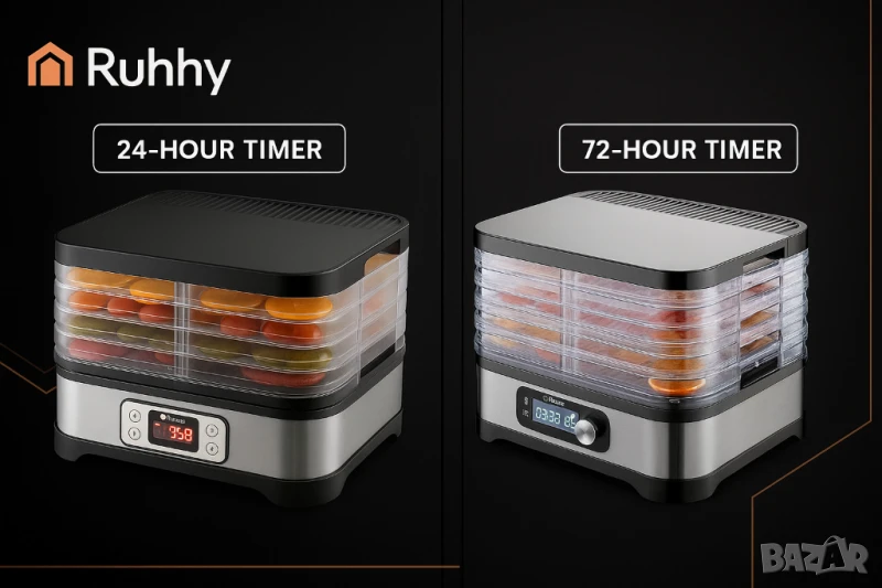 • • • Избери RUHHY 25928 (72ч), ако се нуждаеш от по-дълго време на сушене, механично управление и пълен контрол за по-големи партиди. Цена: 59.90€