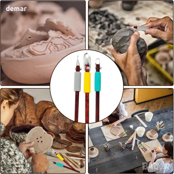 3 бр. стъргалки за глинени скулптури с противоплъзгаща дръжка, комплект инструменти