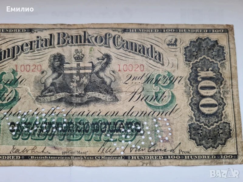 РЯДКА. КАНАДА. 100 ДОЛАРА ОТ 1917 год.