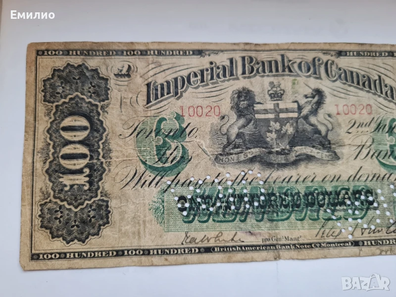 Продавам Рядка Банкнота от Времето на Първата Световна война. 100 Долара от 1917 год. Германски Фалшификат на Канадска 100 доларова Банкнота.