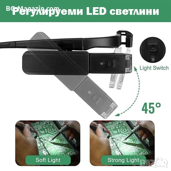 – Свободни ръце: Освободете ръцете си за работа, като същевременно виждате детайлите ясно и прецизно.