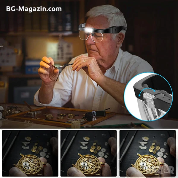 – Свободни ръце: Освободете ръцете си за работа, като същевременно виждате детайлите ясно и прецизно.