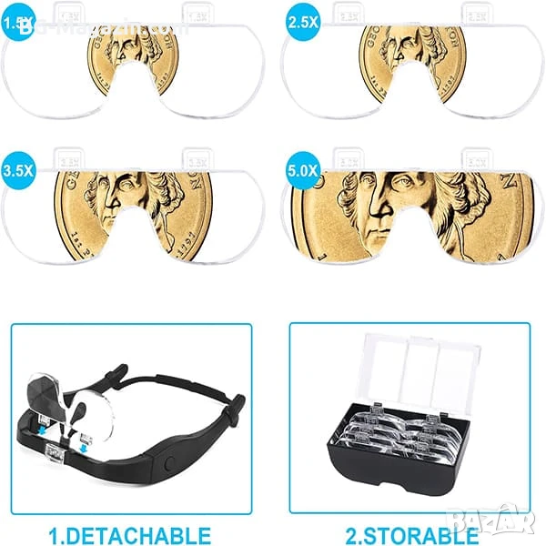 – Разнообразие от увеличения: Четири сменяеми лещи (1.5X, 2.5X, 3.5X и 5X) ви позволяват да изберете най-подходящото увеличение за всяка задача.