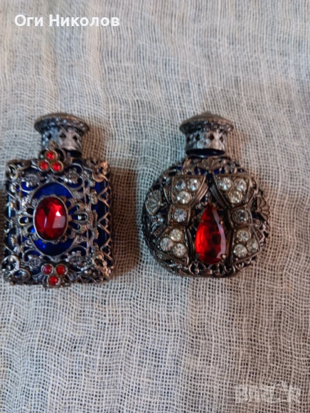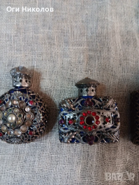 Лот от шишенца от парфюм с метален обков и цветни камъни → Обява 50919398