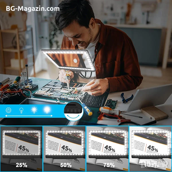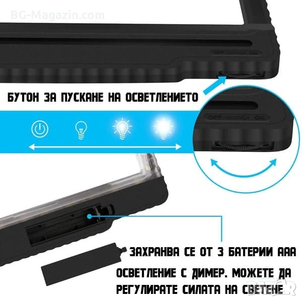 – 36 ултра-ярки LED светлини: Регулируемата яркост ви позволява да адаптирате осветлението към всяка среда, осигурявайки комфортно четене дори при слаба светлина.