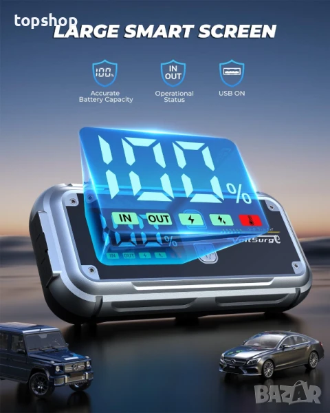 Новообработен 4-инчов LED дисплей: За разлика от традиционните преносими кутии за батерии, които имат само индикаторна светлина, нашият авариен акумулатор е оборудван с 4-инчов визуален LED екран, който ясно показва оставащата мощност и работното състояние. Никога няма да се налага да гадаете точното количество оставаща енергия