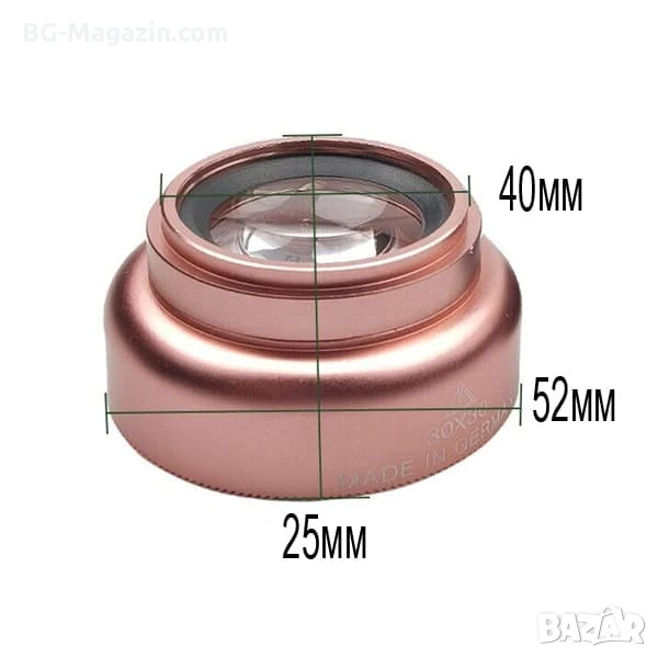 Представяме ви професионална мощна печатарска лупа 30X увеличение – компактен и мощен инструмент, който ви позволява да виждате света в детайли, където и да сте. С 30-кратно увеличение, тази миниатюрна лупа е идеална за разглеждане на бижута, монети, марки, насекоми, растения, електроника и много други обекти, които изискват прецизно наблюдение.