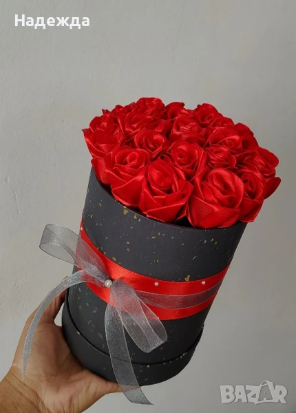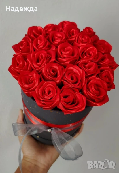 Букет от 23 червени сатенени рози в елегантна черна кутия! Направени с много любов и внимание!