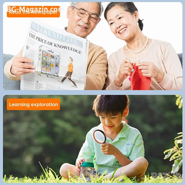 – Четене: Увеличаване на дребен шрифт в книги, вестници, списания, документи и етикети.