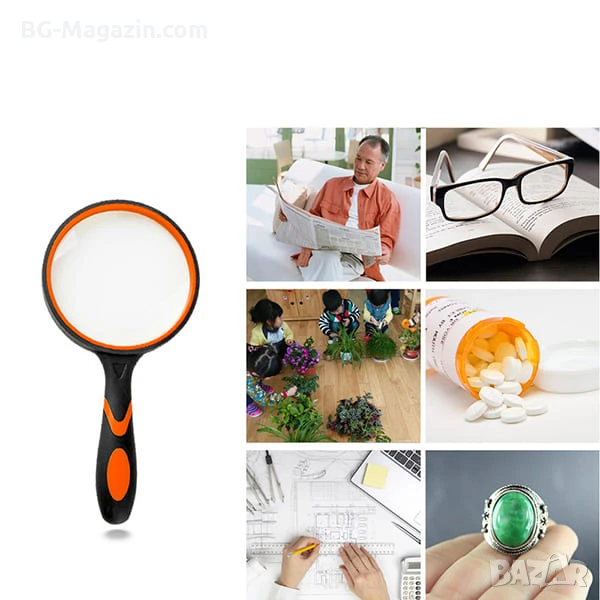 Представяме ви професионална голяма увеличителна ръчна лупа 3X – мощен и удобен инструмент, който ще ви помогне да виждате света в детайли. С голям диаметър на лещата и 3-кратно увеличение, тази лупа е идеална за широк спектър от приложения – от четене на дребен шрифт до разглеждане на бижута, монети, марки и други обекти.