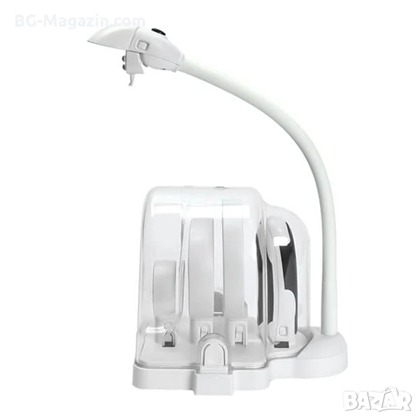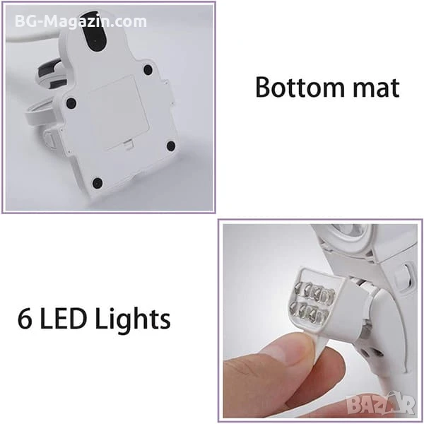 – Гъвкава конструкция: Лесно регулиране на позицията на лупата и светлината.