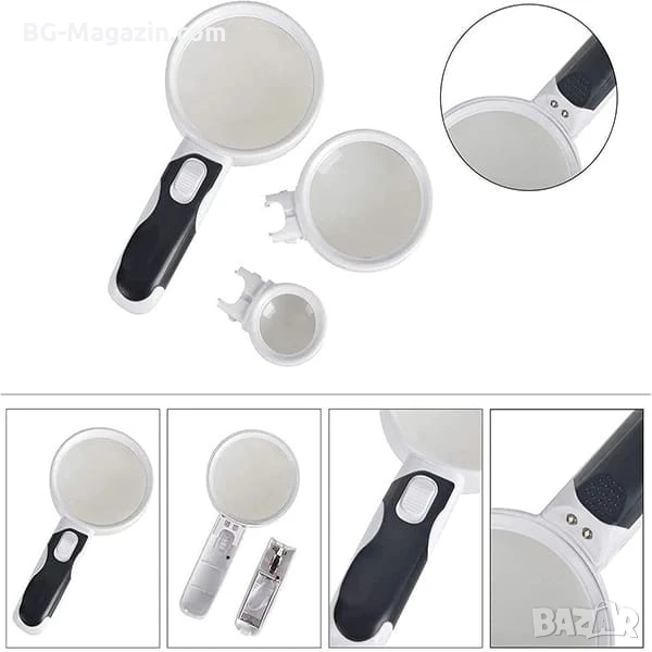 Многофункционалната ръчна и настолна лупа с LED осветление е висококачествен и универсален инструмент, който ще ви бъде безценен помощник при всяка задача, изискваща прецизност и детайлност. Нейните предимства, като разнообразие от увеличения, двойно осветление, гъвкава конструкция, двойна функционалност и удобно съхранение, я правят идеален избор за професионалисти и любители. Поръчайте своята ръчна и настолна лупа с LED осветление още днес и се насладете на удобството и ефективността, които тя предлага!