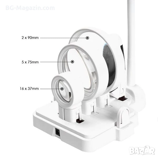 – Двойна функционалност: Лупата може да се използва като настолна или ръчна, осигурявайки максимална гъвкавост.