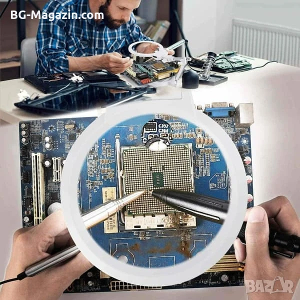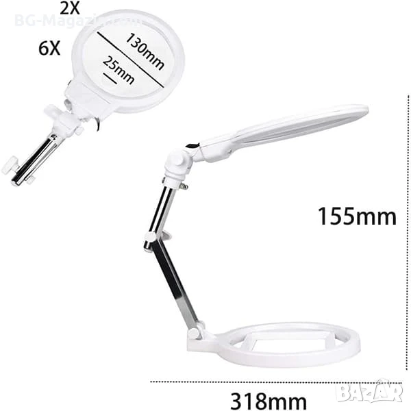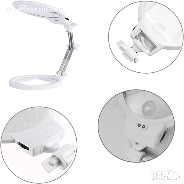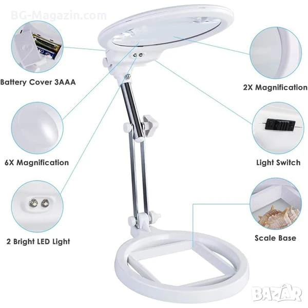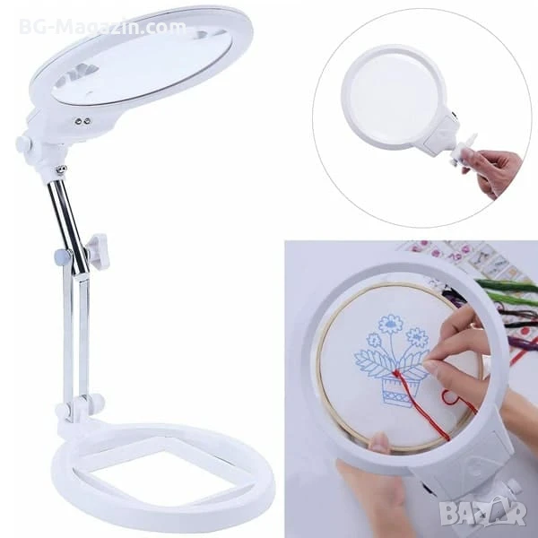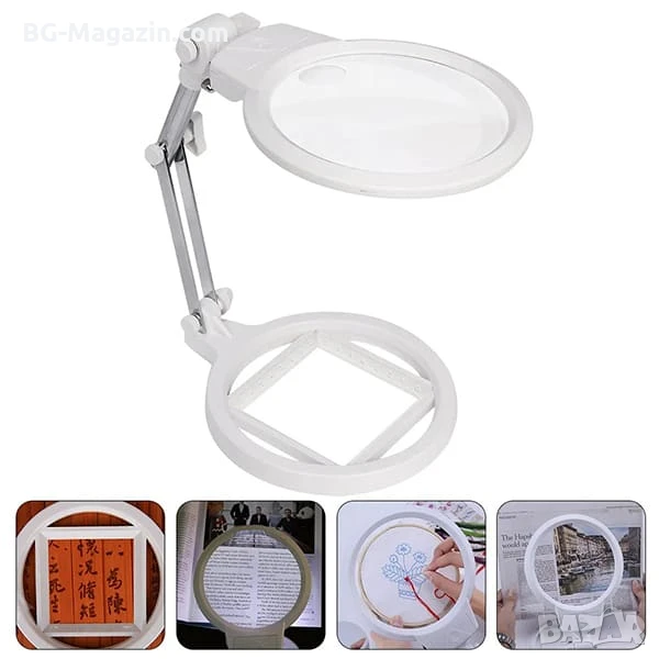 Представяме ви сгъваемата голяма увеличителна настолна лупа с LED осветление – компактен и удобен инструмент, който ви позволява да разгледате света около вас с невиждана досега детайлност. Тази лупа е идеална за широк кръг от приложения – от четене и шиене на гоблени до професионална употреба.
