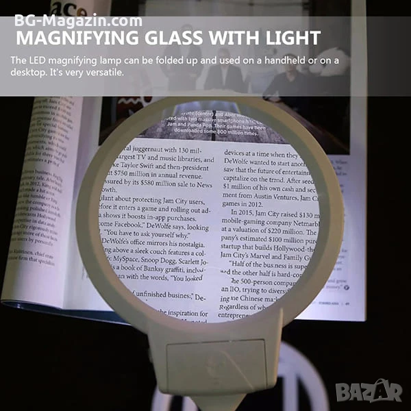 – Четене: Удобно четене на книги, вестници и дребен шрифт.