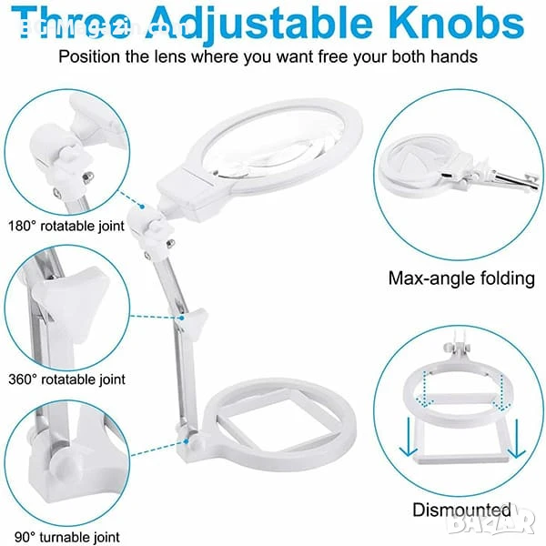 – Многофункционална: Подходяща за четене, шиене, бродиране, запояване, козметични процедури, часовникарство и много други дейности, изискващи увеличение и осветление.