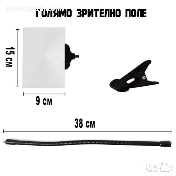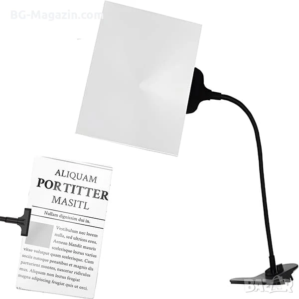 С нашата гъвкава мощна настолна правоъгълна лупа с щипка и 5X увеличение, вие ще придобиете нов поглед върху света около вас. Тя съчетава високо качество, удобство и многофункционалност, за да ви помогне да се справите с всяка задача с лекота и прецизност. Инвестирайте във вашето зрение и комфорт – поръчайте своята лупа днес!