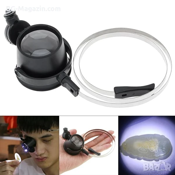 – Удобна лента за глава: Металната лента за глава осигурява стабилно и комфортно закрепване на лупата към главата, освобождавайки ръцете ви за работа.