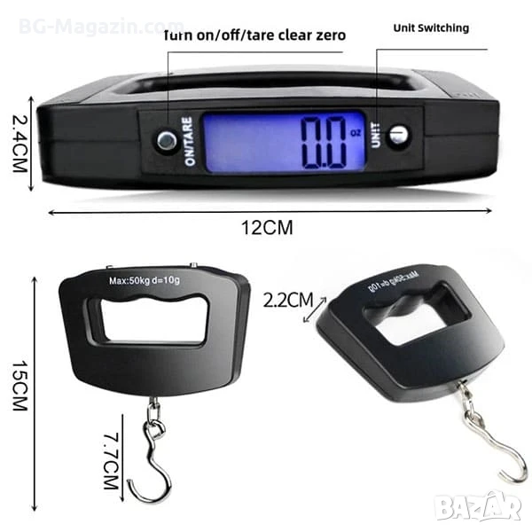 – Многофункционалност: Кантарът поддържа различни мерни единици – килограми (кг), грамове (G), либри (LB) и унции (oz), което ви дава гъвкавост при измерване на различни товари.