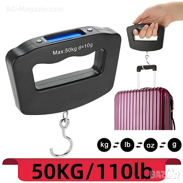 – Голям капацитет: С максимален капацитет от 50 килограма, този кантар е подходящ за претегляне на багаж, риба, покупки, дрехи и много други предмети.