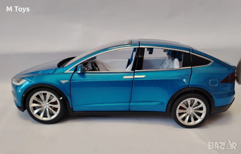 ⚡ Метален модел Tesla Model X – 1:24 мащаб със звук и светлина! 🚗💡🔊Футуристичен дизайн и реалистични детайли – този метален модел на Tesla Model X в мащаб 1:24 е впечатляваща реплика на един от най-модерните електрически автомобили!✨ Характеристики: ✅ Метална (die-cast) изработка✅ Звук и светлина при натискане✅ Отварящи се врати, багажник и крилати задни врати✅ Инерционен механизъм – издърпване назад и пускане✅ Детайлен интериор с бял салон✅ Подходяща както за деца, така и за колекционери🔵 Цвят: Металик син📏 Мащаб: 1:24💰 Цена: 45 лв🎁 Идеален подарък за фенове на електрическите коли и модерните технологии!
