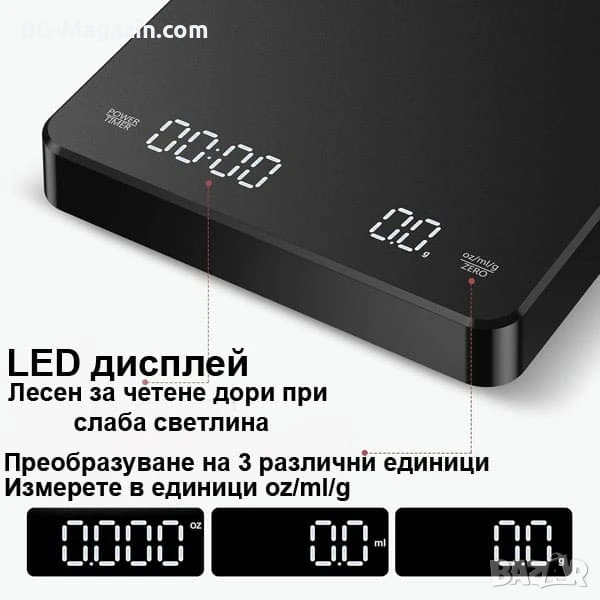 – Максимален капацитет: 3000 g (3 килограма) – измервайте както малки, така и по-големи количества с невероятна точност.