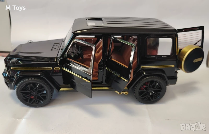 Метален умален модел Mercedes-Benz AMG G63 – 1:18Цена: 60 лв🔊 Със звук и светлина🚗 Висококачествен метален модел – мащаб 1:18Характеристики:Изработен основно от метал – солиден и тежък, не е играчка от пластмасаМащаб 1:18 – около 25 см дължинаСветлинни ефекти – фарове и стопове светят при натисканеЗвукови ефекти – включват звук от стартиране и клаксонОтваряеми врати, преден капак и багажникДетайлен интериор – луксозен кафяв салонРеалистични гуми – меки и въртящи сеЦвят: Черен с жълти лайсни или бял с черни акцентиНадписи: V12, AMG G63, емблема на резервната гума🎁 Подходящ както за подарък, така и за колекция!📦 Цена: 60 лвПишете ни за повече информация.