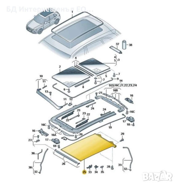 Щора за панорамен таван люк VW, Audi, Seat, Skoda, Черен