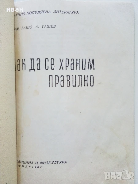 Как да се храним правилно - Ташо Ташев - 1961г. → Обява 50925447